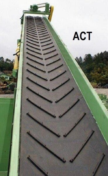 При больших углах наклона (более 22 градусов) для удерживание груза на ленте применяются ленты типа CHEVRON с резиновыми углообразно расположенными выступающими профилями (рёбрами).