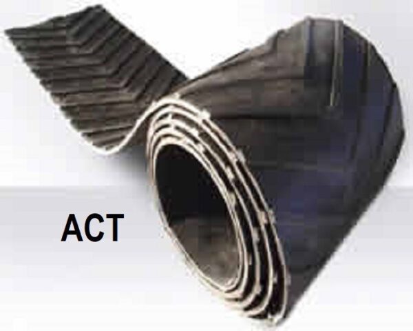 Резинотканевые конвейерные ленты с шевронными ребрами высотой от 5мм до 30мм предназначены для транспортировки кусковых, сыпучих и пакетированных материалов на наклонных конвейерах. На шевронных лентах возможно транспортировать материалы под углом от 20° до 40°.
