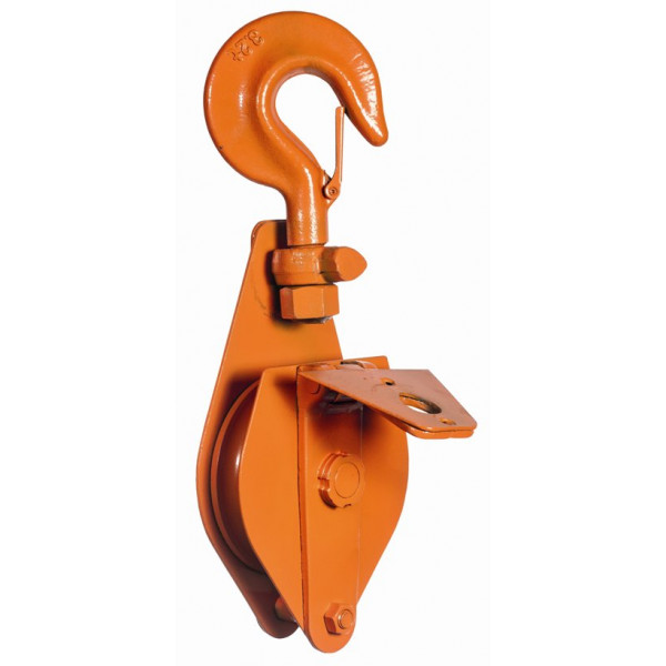 Блок шкивовый однорольный с крюком и откидной щекой 5 т, D каната 15 – 18 мм, СибТаль — это блок с шкивом, который используется в различных подъемных и тяговых системах для изменения направления движения каната и равномерного распределения нагрузки.